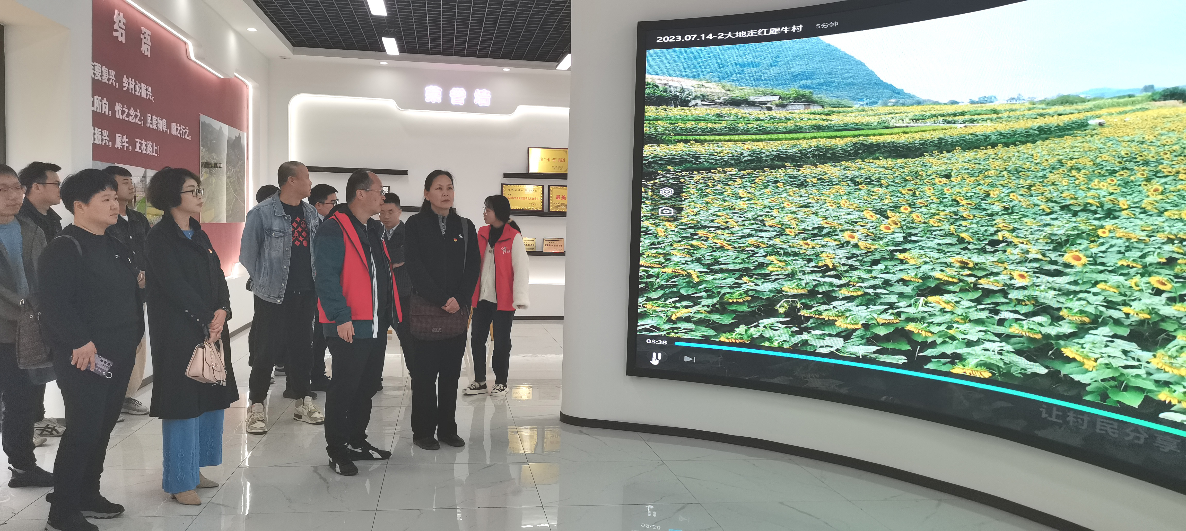 活动的第一站来到了清镇市卫城镇犀牛村,也是我校食品科学与工程学院党委副书记张立新同志驻村的地方,我们参观了卫城镇犀牛村乡村振兴展示中心,听张书记介绍从曾经的“后进村”,到如今远近闻名的“产业村”“幸福村”,犀牛村依靠党建引领,以乡村振兴建设为重点,大力发展富民增收多元产业,充分发挥基层党组织的战斗堡垒作用,激发了村民的内生动力,犀牛村走出了一条抓党建兴产业促治理的发展路径,成为全镇第一个实现村集体经济分红的“榜样村”,赢得了村民的广泛好评。这给党员同志们上了一堂生动的案例课。
