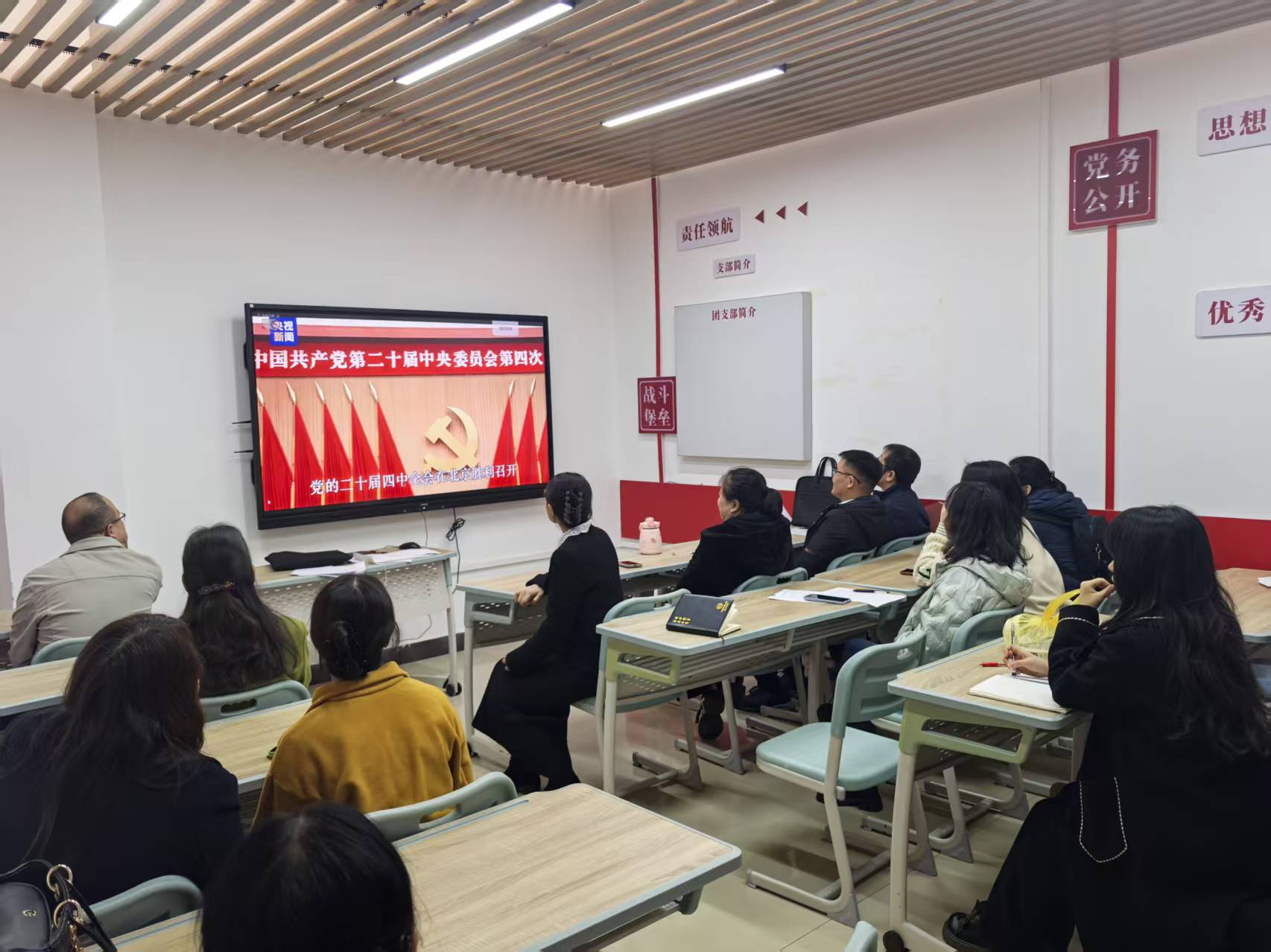 会议伊始,全体党员通过视频学习的方式学习了党的二十届四中全会的主要内容。全会提出了“十五五”时期经济社会发展的主要目标,为我国未来5年发展绘制了明确路线图。从这份宏伟蓝图中,我们清晰看到未来五年的中国——高质量发展将取得显著成效,创新之力更加势不可挡,全面绿色转型脚步走得更快,人民生活品质越来越高,全民族文化创新创造活力充沛澎湃。
