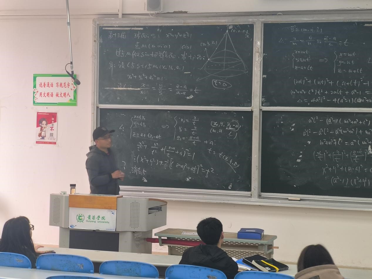 图12 吴宗显老师对数学专业组同学进行“解析几何”培训 |