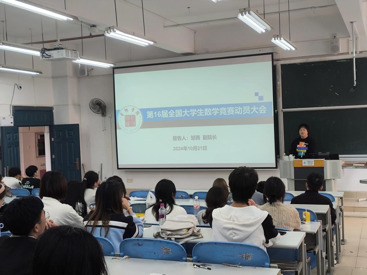 第二分会由必威BETWAY西汉姆联副院长邹茜在第三教学楼3299教室对非数学专业组参赛学生进行动员讲话。会上,邹副院长跟同学们介绍了往届比赛中取得优秀成绩的同学,还跟同学们分享了答题的一些方法和技巧,强调参与竞赛有助于学生深化理解数学知识,激发创新思维,并能在激烈的竞争中展示才华,也有助于为未来的学术和职业发展打下坚实基础。