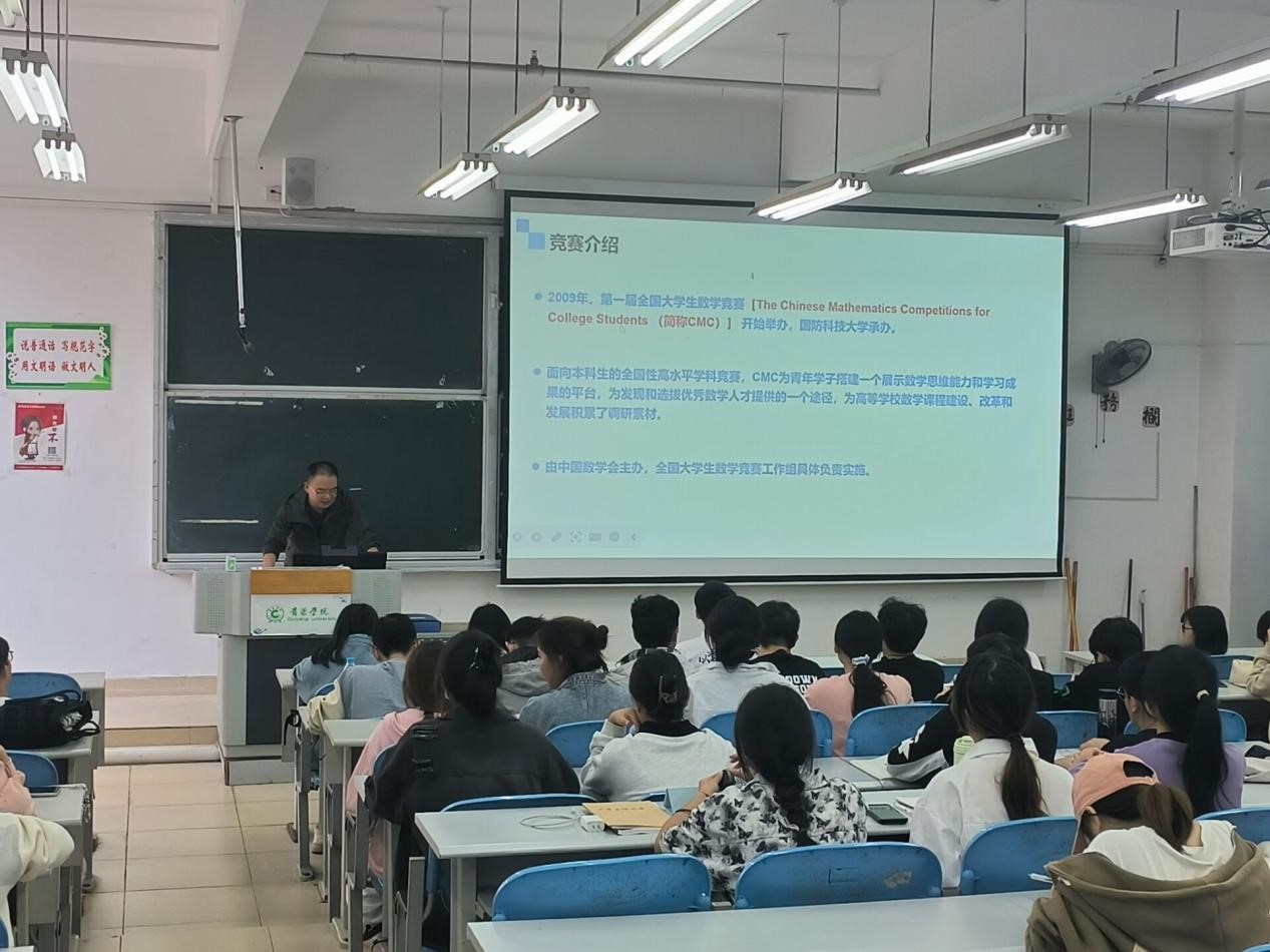 在金秋的收获季节里,我们迎来了第十六届全国大学生数学竞赛。这是一场关于知识、智慧与技巧的较量,是无数学子翘首以盼的数学盛宴。2024年10月21日,bw必威西汉姆联大学生数学竞赛组在第三教学楼举行bw必威西汉姆联2024年全国大学生数学竞赛动员大会。由数学专业组和非数学专业组两个分会组成。动员大会之后,竞赛组指导教师对参赛学生进行一系列的数学专业知识培训。