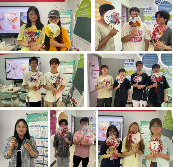 创作环节结束后,同学们纷纷亮出自己精心制作的干花团扇和书签作品,畅谈创作中的灵感来源,分享制作中的感悟。许多同学表示,当全身心投入在花材的挑选、搭配与制作中时,能够暂时忘却期末临近带来的紧张与焦虑,体验到一种专注、宁静、平和的情绪,而这也是活动主题“花漾愈疗”的生动体现。