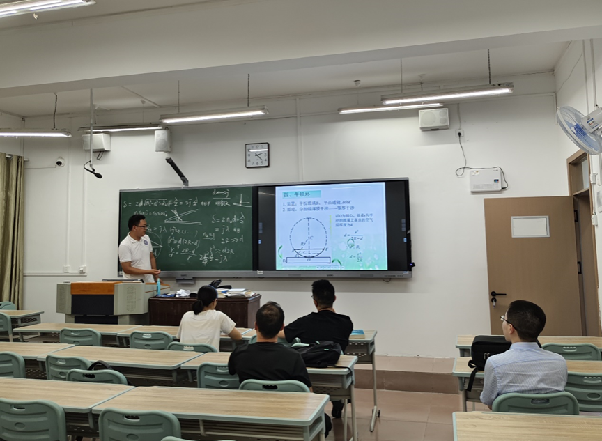 物理类磨课针对“理论性强、重难点集中、学生理解门槛高”的教学痛点,以“靶向研讨+细节打磨+成果固化”模式开展专项磨课。如:杨子义老师优化《光学》“光的干涉-牛顿环”演示流程,先展示实物干涉条纹,再动画模拟“空气膜厚度变化与条纹形成关系”,最后推导公式,构建“具象→半抽象→抽象”认知路径;吴淑蕊老师在《物理光学》“简谐振动”教学中,补充“单摆与弹簧振子对比实验视频”,直观展示“回复力大小”“角频率差异”,帮助学生理解核心参数意义。